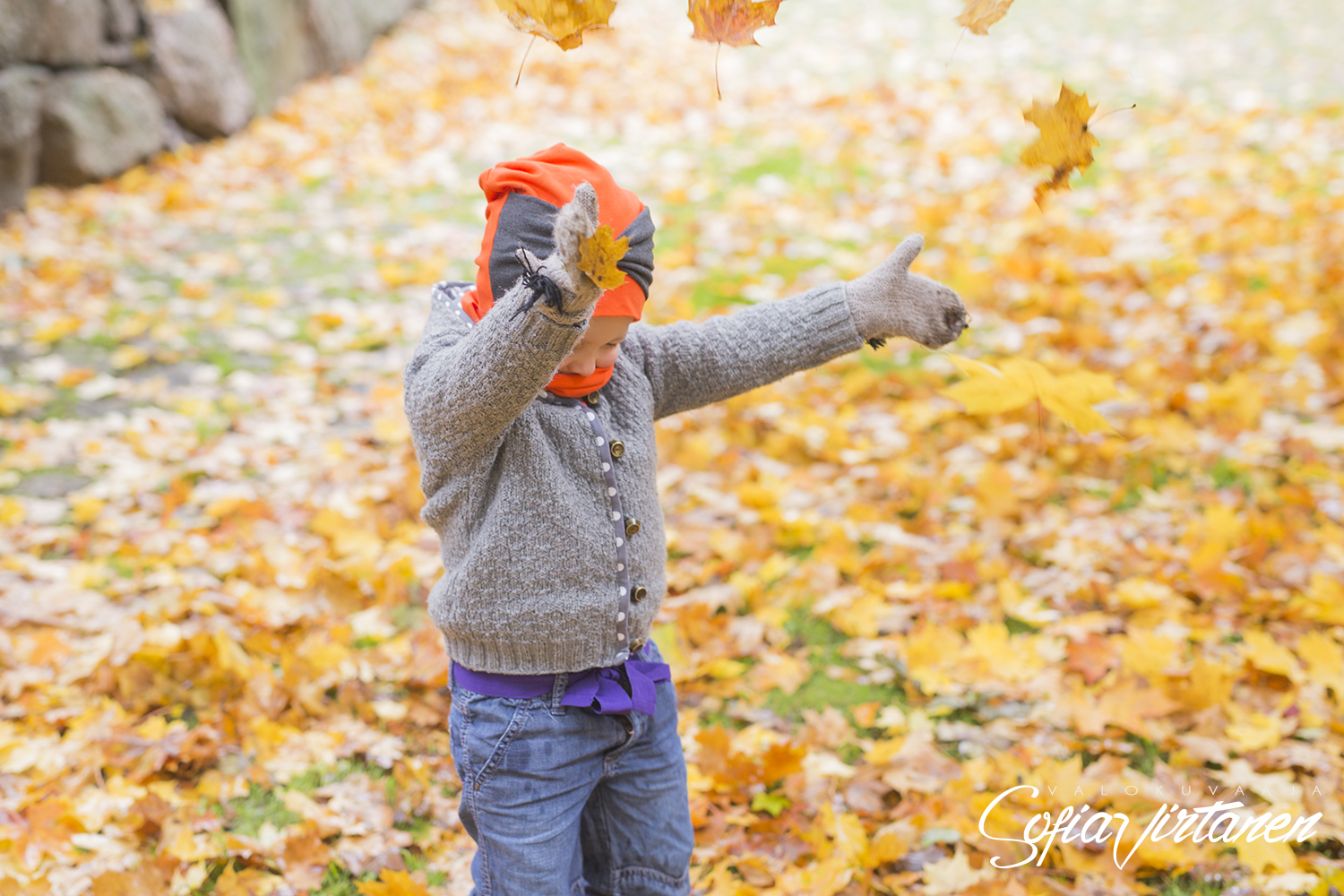 Syksy on lempi vuoden aikani. Kaikki se kaunis väriloisto, mitä luonto saa aikaiseksi. Onneksi tänä syksynä on ollut myös sateettomia päiviä, niin olen päässyt kuvaamaan näitä ihania perheitä ja lapsukaisia ulos. Ulkona kuvatessa yleensä lapset ja vanhemmat ovat paljon rennompia kuin studio olosuihteissa. Ulkona on myös enemmän tilaa toteuttaa vaikka toiminnallisempia kuvia kuin studiossa.